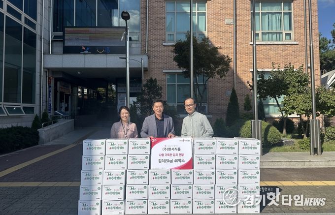 [경기핫타임뉴스=김삼영 기자] 시흥시 정왕본동에 있는 ㈜한서식품은 지난 10월 16일 정왕본동 행정복지센터(동장 박래천)의 어려운 이웃을 위해 김치(5kg) 40상자를 기부했다.