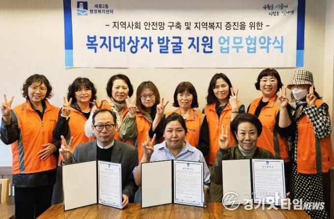 [경기핫타임뉴스=김삼영 기자] 수원시 권선구 세류2동 행정복지센터 및 지역사회보장협의체는 20일, 세류2동 취약계층의 복지 증진을 위해 석산정과 업무협약을 체결했다.