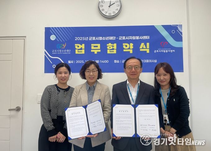 [경기핫타임뉴스=김삼영 기자] 군포시청소년재단은 10월 20일 군포시청소년재단 대표이사실에서 군포시자원봉사센터와 지역사회 상생 및 자원봉사 활성화를 위한 업무협약을 체결했다.
