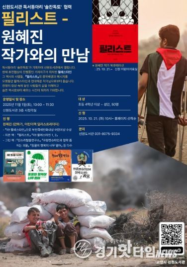 팔레스타인 땅의 역사와 사람들을 다룬 책『아! 팔레스타인』으로 부천국제만화대상 어린이상을 수상한 원혜진 작가는 오랫동안 팔레스타인의 평화를 기원해 왔다. 현재 휴전협상이 진행 중인 팔레스타인 정세에 관한 시의적절한 지식과 작가의 인도적 관점을 엿볼 수 있을 것이다. 특히 이 프로그램은 도서관 독서동아리 ‘솔찬독토’에서 기획, 신원도서관에서 열리게 되어 더욱 뜻깊다.