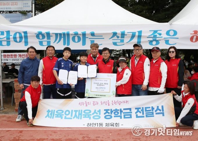[경기핫타임뉴스=김삼영 기자] 광명시 하안1동 체육회는 지난 18일 열린 광명시민화합 체육대회에서 지역의 유망 체육 청소년 2명에게 총 100만 원의 장학금을 전달했다.