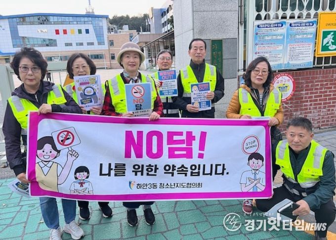 [경기핫타임뉴스=김삼영 기자] 광명시 하안3동 청소년지도협의회는 지난 20일 가림초등학교, 가림중학교, 하안사거리 등 관내 주요 지역에서 청소년 대상 금연 캠페인을 실시했다.
