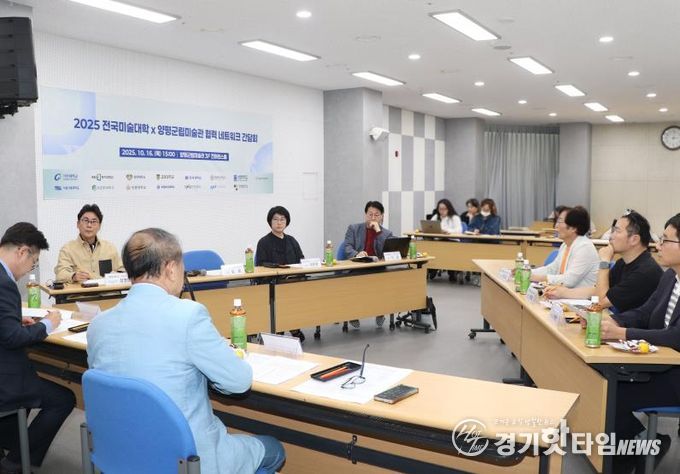 미술관은 지난 16일 15개 업무 협약(MOU) 대학 중 △경희대학교 미술대학 △고려대학교 디자인조형학부 △덕성여자대학교 Art·Design 대학 △서울시립대학교 예술체육대학 △가천대학교 예술체육대학 △중앙대학교 예술대학 6개 대학교 교수진을 초청해 ‘양평군립미술관x전국미술대학 협력 네트워크’ 1차 간담회를 열었다. 이 자리에서는 2026년 3월 개최될 ‘유망주(가제)’ 전에 대한 세부 계획을 논의했다.