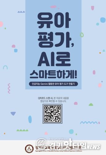 [경기핫타임뉴스=김삼영 기자] 경기도교육청북부유아체험교육원이 22일 유아교육 현장의 교사들이 인공지능(AI)을 활용해 유아 놀이를 효과적으로 분석하고 평가할 수 있도록 돕기 위해 ‘유아 평가, AI(인공지능)로 스마트하게!’리플릿과 영상자료를 제작·배포한다.