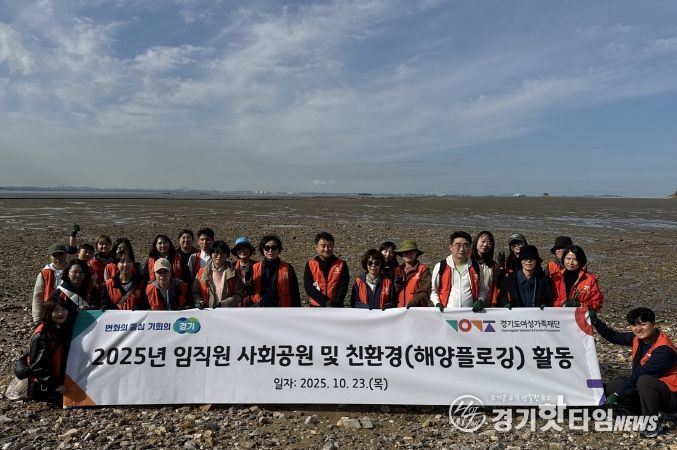 [경기핫타임뉴스=김삼영 기자] 경기도여성가족재단은 23일 화성시 고온항 및 궁평항 일대에서 임직원 36명이 참여한 가운데 ‘2025년 사회공헌 및 친환경 활동’(해양 플로깅)을 펼쳤다.