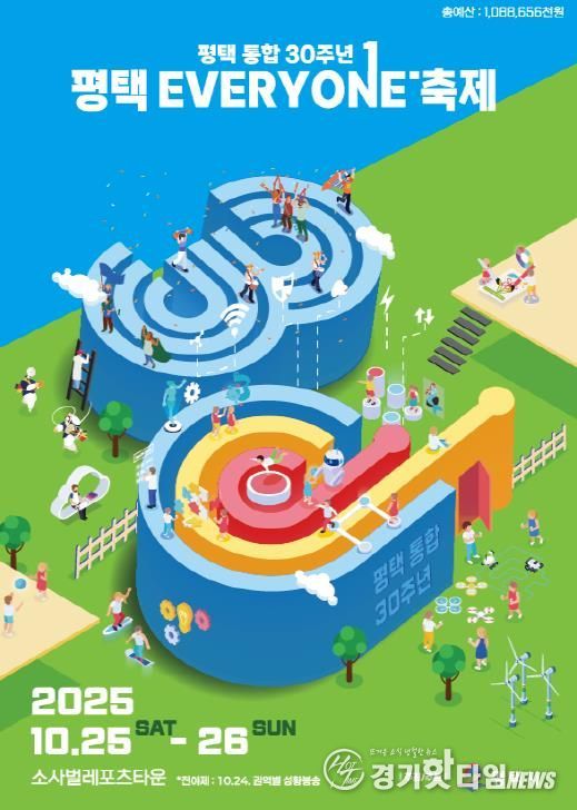[경기핫타임뉴스=김삼영 기자] 평택시는 평택시 통합 30주년을 기념해 오는 25일부터 26일까지 이틀간 소사벌레포츠타운 일원에서 '평택 통합 30주년, 평택 EVERYONE 축제'를 개최한다고 밝혔다.
