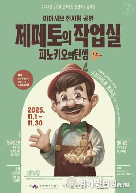 [경기핫타임뉴스=김형철 기자] (재)구리문화재단은 한국장애인문화예술원이 주최하는 무장애 문화 향유 활성화 지원사업의 일환으로 몰입형 전시 공연 '제페토의 작업실 : 피노키오의 탄생'을 11월 1일부터 11월 30일까지 개최한다고 밝혔다.