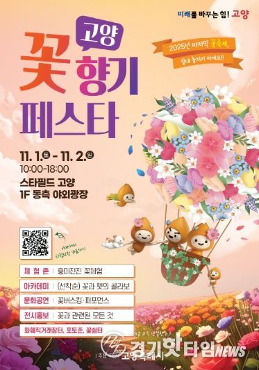 [경기핫타임뉴스=김형철 기자] 고양특례시는 오는 11월 1일과 11월 2일, 오전 10시부터 오후 6시까지, 스타필드 고양 1층 동측 야외광장에서 2025년 마지막 꽃축제인 ‘고양 꽃향기 페스타’를 개최한다고 밝혔다.
