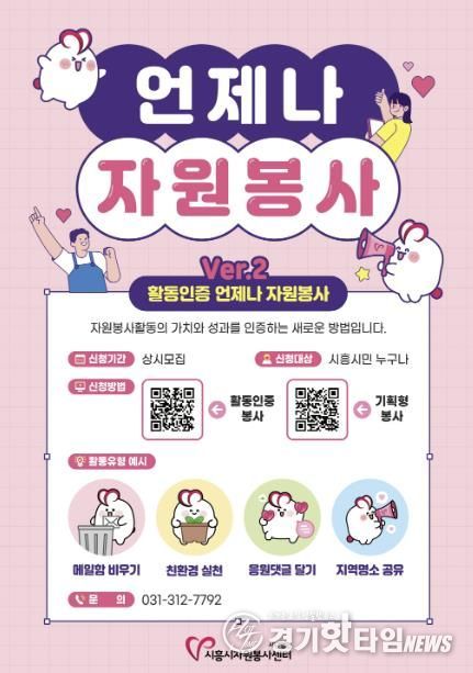 센터는 이번 사업을 계기로 시흥시자원봉사센터의 ‘언제나 자원봉사’ 페이지를 개편해, 시민들이 언제 어디서나, 비대면으로 쉽게 활동인증 자원봉사에 참여할 수 있는 시스템을 구축했다. 또한, 쓰담달리기(플로깅) 외에도 디지털 탄소 저감, 지역 문화 소개, 친환경 활동 등 다양한 종류의 활동인증 자원봉사 프로그램을 제공한다.