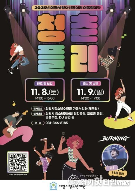 [경기핫타임뉴스=김삼영 기자] 의왕시청소년재단 산하 의왕시청소년수련관은 오는 11월 8일부터 9일까지 이틀간, 청소년 및 지역주민을 대상으로 의왕시 청소년동아리 어울림마당 '청춘플리'를 개최한다.