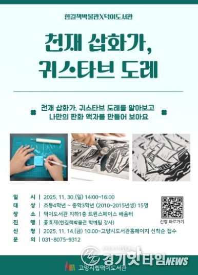 [경기핫타임뉴스=김형철 기자] 고양특례시 덕이도서관이 오는 11월 30일 오후 2시부터 4시까지 한길책박물관과 협력해 ‘천재 삽화가, 귀스타브 도레’ 프로그램을 운영한다.
