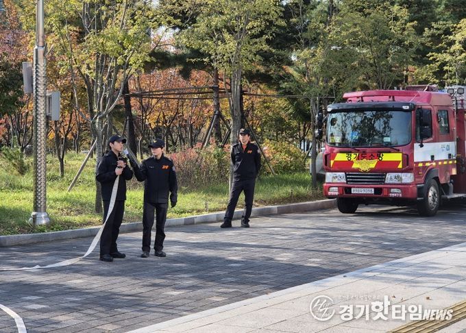 [경기핫타임뉴스=김삼영 기자] 경기도교육청이 4일 북부청사에서 의정부소방서 금오119안전센터와 함께 합동 소방훈련을 실시했다.