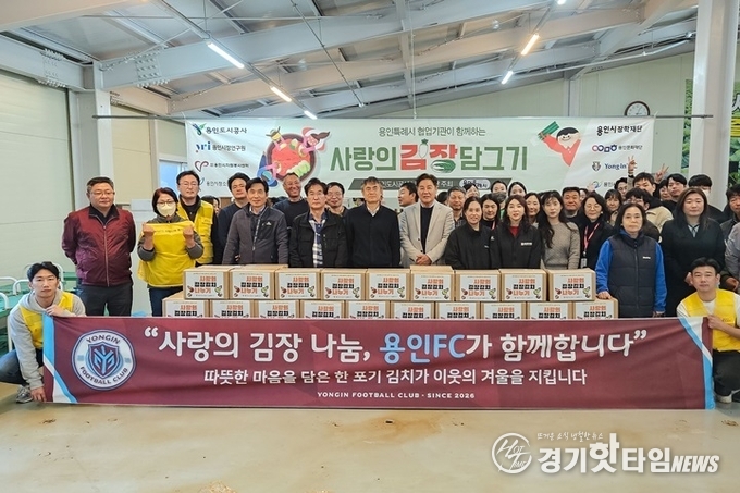 [경기핫타임뉴스=김삼영 기자] (재)용인시시민프로축구단(이하 용인FC)는 용인시 협업기관과 함께 지역사회 나눔을 실천하기 위해 ‘사랑나눔 김장 봉사’를 진행했다고 밝혔다.