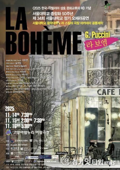 [경기핫타임뉴스=김삼영 기자] 시흥시와 서울대 교육협력사업인 ‘스누콤 합창단’이 ‘2025 한국-이탈리아 상호 문화교류의 해’를 기념해 서울대 음악대학과 라 스칼라 극장 아카데미가 공동으로 제작하는 오페라 ‘라 보엠(La Boheme)’에 특별출연한다.