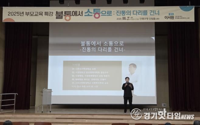 [경기핫타임뉴스=김삼영 기자] 안산시는 단원구청 단원홀에서 ‘불통에서 소통으로: 진통의 다리를 건너’를 주제로 부모교육 특강을 진행했다고 11일 밝혔다.