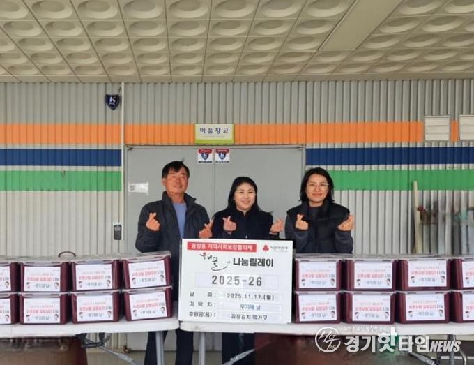 [경기핫타임뉴스=김삼영 기자] 오산시 중앙동행정복지센터는 지난 17일 중앙동 지역사회보장협의체 우기제 위원장이 관내 취약계층 100가구 지원을 위해 직접 담근 김장김치를 기부했다고 밝혔다.