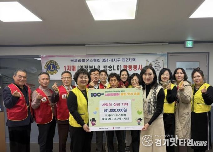 [경기핫타임뉴스=김형철 기자] 의정부시 신곡2동주민센터는 11월 18일 국제라이온스협회 354-H 2지역 1지대가 성금 100만 원을 기탁하며 ‘100일간 사랑릴레이 배턴 잇기’에 동참했다고 밝혔다.