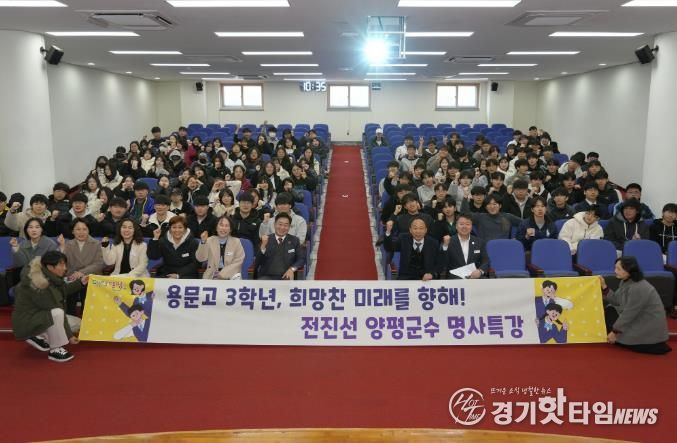 [경기핫타임뉴스=김형철 기자] 전진선 양평군수는 지난 19일 용문고등학교 소강당에서 3학년 학생 140여 명을 대상으로 ‘큰 꿈을 향한 준비가 미래를 여는 힘’을 주제로 명사 특강을 진행했다.