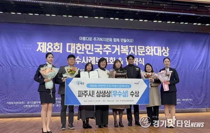 [경기핫타임뉴스=김형철 기자] 파주시가 지난 20일 2025년도 ‘제8회 대한민국주거복지문화대상’시상식에서 기관 부문 상생상(우수상)을 수상했다고 밝혔다.