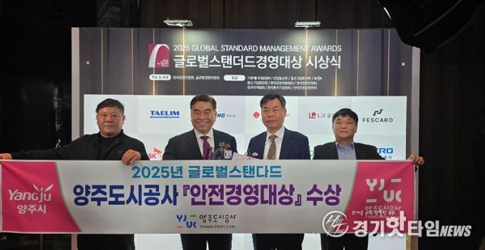 [경기핫타임뉴스=김형철 기자] 양주도시공사는 국내외 산업계와 공공기관이 참여하는 ‘2025 글로벌스탠더드 어워드’에서 '안전경영대상'을 수상했다고 밝혔다.