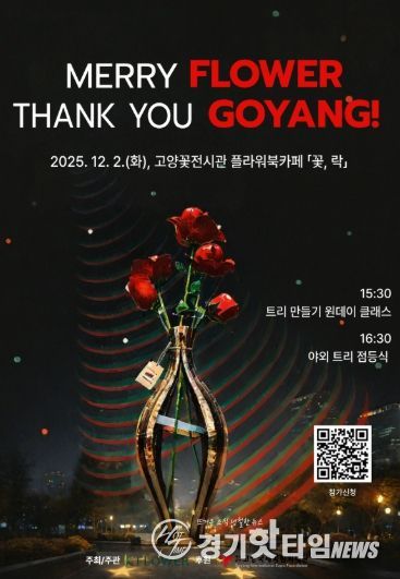 [경기핫타임뉴스=김형철 기자] 2025년 한 해 꽃을 사랑해 준 고양시민들에게 감사한 마음을 전하는 화훼 문화행사 ‘메리 플라워, 땡큐 고양!(Merry Flower, Thank you GOYANG!)’이 오는 12월 2일 고양꽃전시관 (플라워북카페)에서 개최된다.