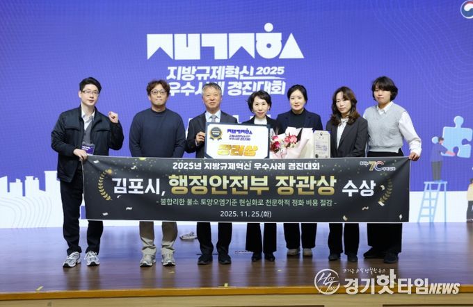[경기핫타임뉴스=김형철 기자] 김포시가 지난 25일 정부세종컨벤션센터에서 열린, 행정안전부가 주관한 ‘2025년 지방규제혁신 우수사례 경진대회’에서 장관상(장려)을 수상했다.
