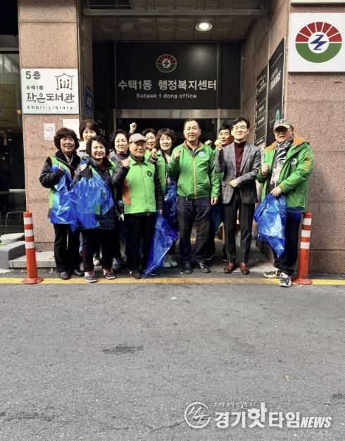 [경기핫타임뉴스=김형철 기자] 구리시는 수택1동 자율방재단이 11월 26일 수택1동 관내에서 겨울철 강설에 대비한 환경정화 활동을 했다고 밝혔다. 이번 활동은 구리초등학교 인근 주택가와 수택1동 내 이면도로 등을 중심으로 진행됐다.