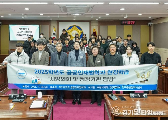 [경기핫타임뉴스=김형철 기자] 포천시의회는 28일, 대진대학교 공공인재법학과(학장 김도협) 학생들이 시의회를 방문하여 본회의장 및 특별위원회 회의실을 견학했다고 밝혔다.