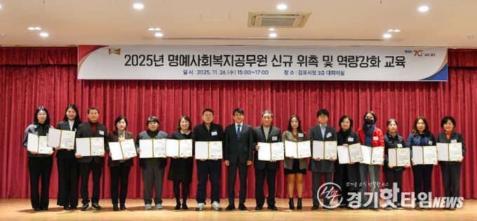 [경기핫타임뉴스=김형철 기자] 김포시는 지난 26일 통·리장과 지역사회보장협의체 위원 등 지역 주민 181명을 신규 명예사회복지공무원으로 위촉했다. 이 중 대표 15명에게 위촉장을 수여했으며, 약 100명을 대상으로 역량 강화 교육도 함께 진행했다.