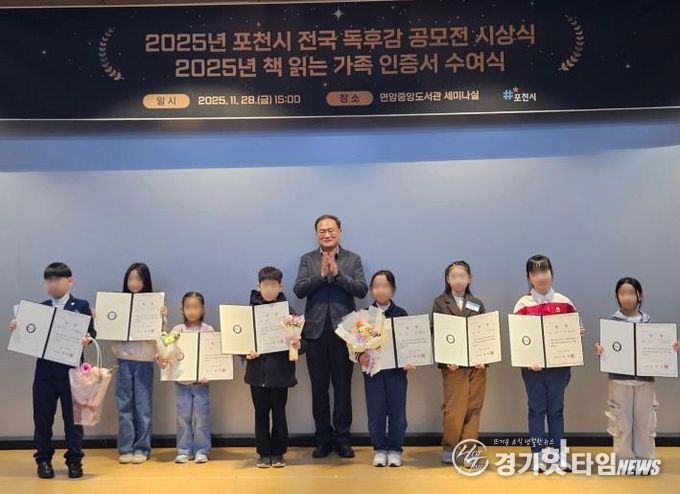 [경기핫타임뉴스=김형철 기자] 포천시는 지난 11월 28일 면암중앙도서관 세미나실에서 ‘2025년 전국 독후감 공모전 시상식 및 책 읽는 가족 인증서 수여식’을 성황리에 개최했다.