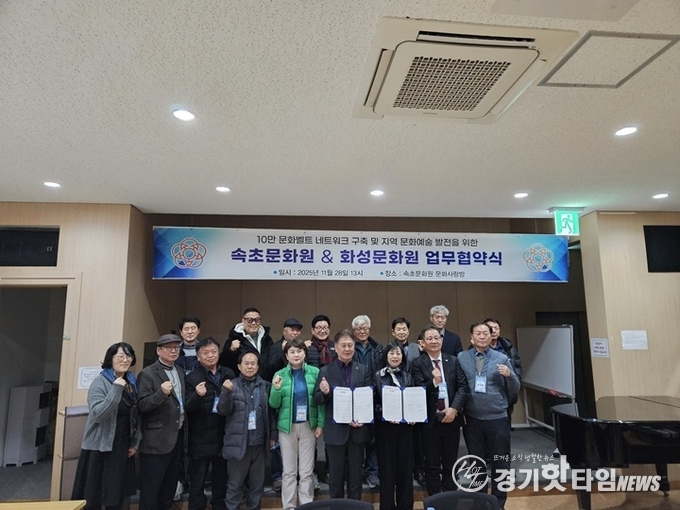 [경기핫타임뉴스=김삼영 기자] 화성문화원이 지난 11월 28일부터 29일까지 속초를 방문해 속초문화원과 ‘10만 문화벨트 네트워크 구축 및 지역 문화예술 발전’을 위한 업무협약(MOU)을 체결했다.