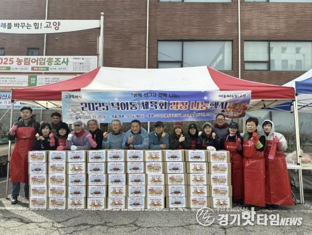 [경기핫타임뉴스=김형철 기자] 고양특례시 일산서구 덕이동 체육회는 지난달 29일, 덕이동 행정복지센터 주차장에서 ‘이웃사랑 김장 나눔 행사’를 개최했다고 밝혔다.