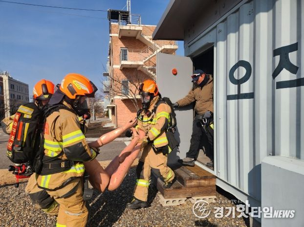 훈련은 컨테이너 암실 장애물 극복 훈련장에서 진행됐으며, 화재로 건물 내부 전원이 차단되고 농연이 확산된 상황을 가정해, 시야 확보가 제한된 상태에서 인명 구조와 신속대응팀(RIT) 투입 절차를 실전처럼 수행했다.