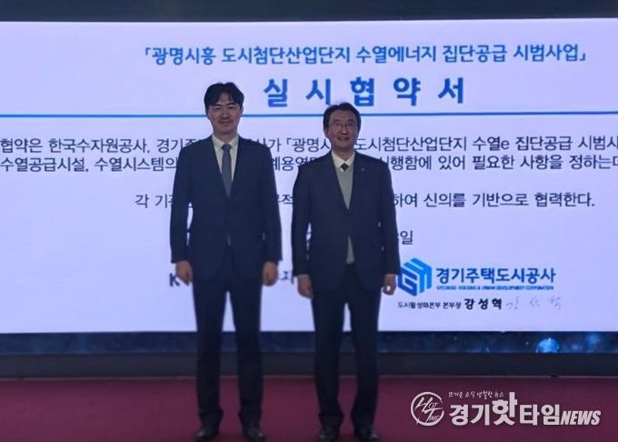 [경기핫타임뉴스=김삼영 기자] 경기주택도시공사(GH)는 3일 GH 수원 본사 9층 역량개발센터에서 한국수자원공사(K-water)와 함께 ‘광명시흥 도시첨단산업단지 수열에너지 집단공급 시범사업’ 추진을 위한 실시협약을 체결했다고 밝혔다. 이 자리에는 양 기관 관계자 약 30명이 참석했다.