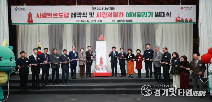 [경기핫타임뉴스=김삼영 기자] 용인특례시는 3일 시청 컨벤션홀에서 ‘희망 2026나눔캠페인 사랑의 온도탑제막식 및 사랑의 열차 이어달리기 발대식’을 개최했다.