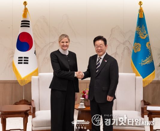 [경기핫타임뉴스=김삼영 기자] 이재명 대통령은 오늘 오후 대통령실에서 국제올림픽위원회(IOC) 커스티 코번트리(Kirsty Coventry) 위원장을 만나 한국과 IOC 간의 국제 스포츠 협력 방안에 대해 논의했다.
