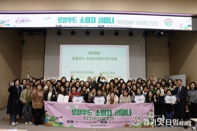 [경기핫타임뉴스=김삼영 기자] (재)화성푸드통합지원센터는 12월 3일 ‘2025 로컬푸드 소비자 세미나’를 성공적으로 개최했다고 밝혔다. 올해 세미나는 ‘로컬푸드, 이야기를 듣다’를 주제로, 시민 참여와 지역 농업 가치 확산을 위한 다양한 프로그램을 진행해 큰 호응을 얻었다.
