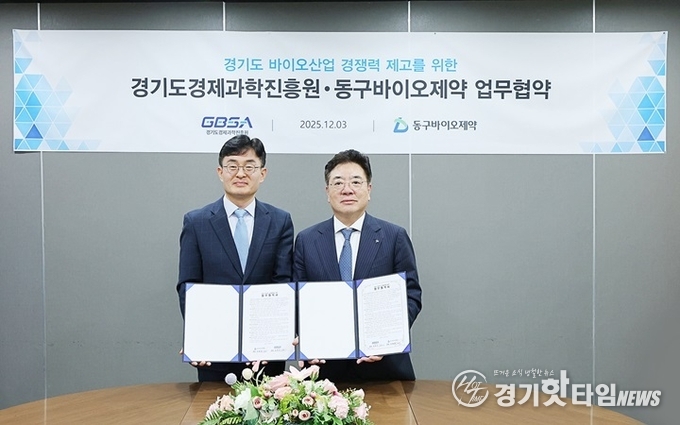 [경기핫타임뉴스=김삼영 기자] 경기도경제과학진흥원(이하 경과원)은 3일 ㈜동구바이오제약과 바이오·헬스케어 스타트업의 기술 실증과 사업화를 위한 업무협약을 체결하고, 민관 협력 기반의 바이오 스타트업 성장 지원 체계를 본격 가동한다고 밝혔다.