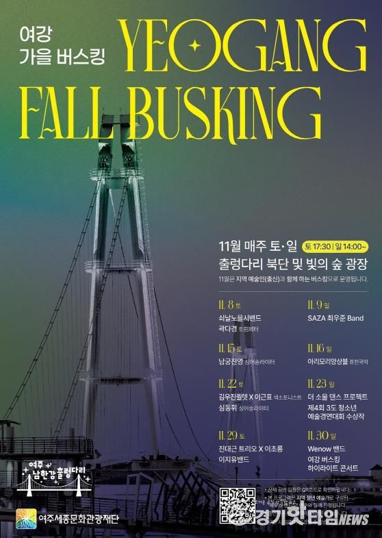 [경기핫타임뉴스=김형철 기자] 여주세종문화관광재단은 9월부터 11월까지 가을 시즌을 맞아 여주 남한강 출렁다리 일원에서 운영한 '여강 폴 나잇 버스킹'이 시민과 관광객들의 큰 호응 속에 성황리에 마무리됐다고 밝혔다.