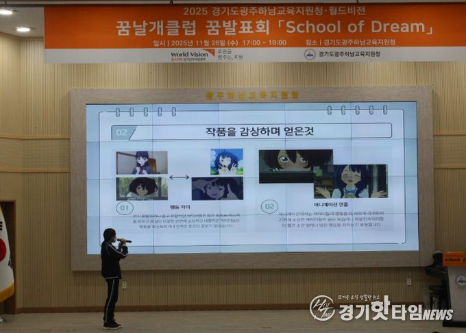 [경기핫타임뉴스=김삼영 기자] 경기도광주하남교육지원청과 월드비전 경기남부사업본부는 지난 11월 26일 교육지원청 대강당에서 ‘꿈날개클럽 꿈발표회’를 열고, 참여 학생들의 1년간 성장 여정을 나누는 자리를 마련했다.