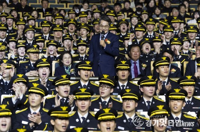 경기도소방재난본부는 19일 경기아트센터에서 신임 소방공무원 임용식을 개최했다. 임용식에는 신규 임용 소방공무원과 가족을 비롯해 김동연 도지사와 최용철 경기도소방재난본부장 전담직무대리, 임상오 경기도의회 안전행정위원회 위원장, 도의원 등 약 1,500명이 자리를 함께했다.