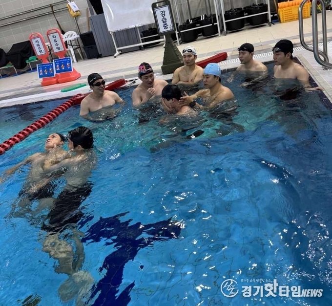 주요 훈련 내용으로는 ▲수상인명구조장비 사용법 ▲기초영법·접근영법·구조영법 등 수심 적응 훈련 ▲익수자 접근 및 확보 절차 ▲구조대상자 응급처치 및 사후 관리 등이 포함됐다.