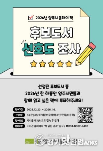 [경기핫타임뉴스=김형철 기자] 양주시가 오는 12월 23일부터 2026년 양주시 『올해의 책』 선정을 위한 시민 설문조사를 실시한다.