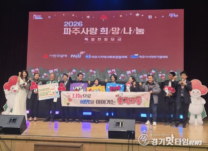 [경기핫타임뉴스=김형철 기자] 파주시 운정3동 주요 사회단체들은 지난 19일, 파주시민회관 대공연장에서 개최된 ‘2026 파주사랑 희망나눔 특별현장모금’에 참여해 성금과 물품을 전달하며 연말을 맞아 따뜻한 나눔을 실천했다.