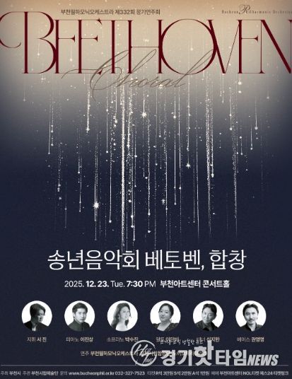 [경기핫타임뉴스=김형철 기자] 부천필하모닉오케스트라가 오는 12월 23일 오후 7시 30분 부천아트센터 콘서트홀에서 제332회 정기연주회 송년음악회 ‘베토벤, 합창’을 개최한다. 이번 송년음악회는 부천필이 2015년부터 매년 선보여온 프로그램인 베토벤 '교향곡 제9번 ‘합창’'과 함께, 모차르트 '피아노 협주곡 제12번'이 연주된다. 공연에는 지휘자 서진과 부천필이 무대에 오르며, 소프라노 박수진, 메조소프라노 이단비, 테너 신지한, 베이스 권영명이 협연하며 부천시립합창단과 노이오페라코러스가 연주로 함께 무대를 꾸민다.