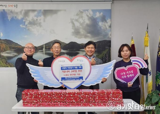 [경기핫타임뉴스=김형철 기자] 포천시 소흘읍 행정복지센터는 지난 22일, 한마음교회와 ㈜마른파이브가 지역 내 취약계층을 돕기 위한 겨울 내복 240벌을 기탁했다고 밝혔다.