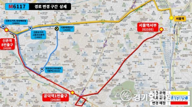 [경기핫타임뉴스=김형철 기자] 김포시는 지난 8월부터 서울시 서소문고가 철거 공사로 인해 서울역을 미정차하던 대광위 광역급행버스 M6117번의 종점을 기존 이대입구에서 서울역 서부로 변경하여 2026.1.3.부터 운행한다고 밝혔다.