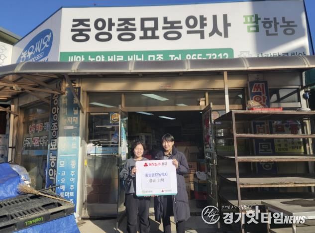 [경기핫타임뉴스=김형철 기자] 동두천시 중앙종묘농약사는 지난 22일 연말을 맞아 생연2동 행정복지센터에 어려운 이웃을 돕기 위한 성금 100만 원을 기탁했다.