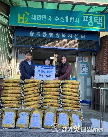 [경기핫타임뉴스=김삼영 기자] 송탄한마음교회는 최근 크리스마스를 맞아 어려운 이웃들에게 따뜻한 마음을 전하기 위해 쌀 10㎏ 50포(총 500㎏)를 평택시 송북동 행정복지센터에 전달했다.