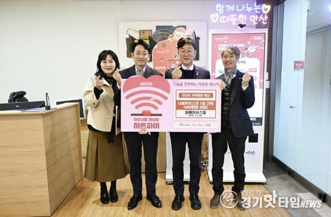 [경기핫타임뉴스=김삼영 기자] 안산시는 지난 23일 원바이 시스템으로부터 이동식 나눔 키오스크 1대(약 660만 원 상당)를 기탁받았다고 24일 밝혔다.